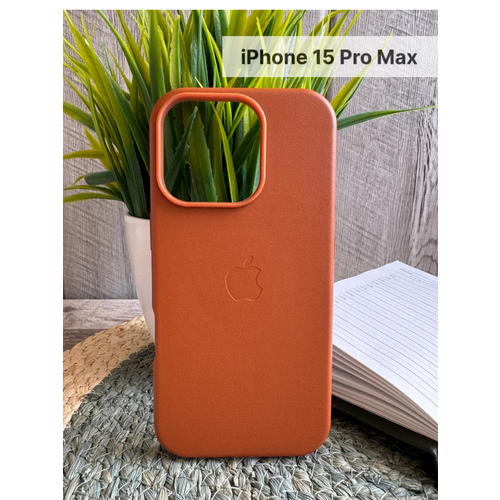 Чехол светло-коричневый для IPhone 15 Pro Max Leather Case с анимацией и поддержкой беспроводной зарядки