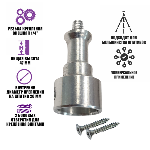 Адаптер ADLS-14 на штатив диаметром до 19 мм с 2 винтами, для крепления фотооборудования, резьба 1/4