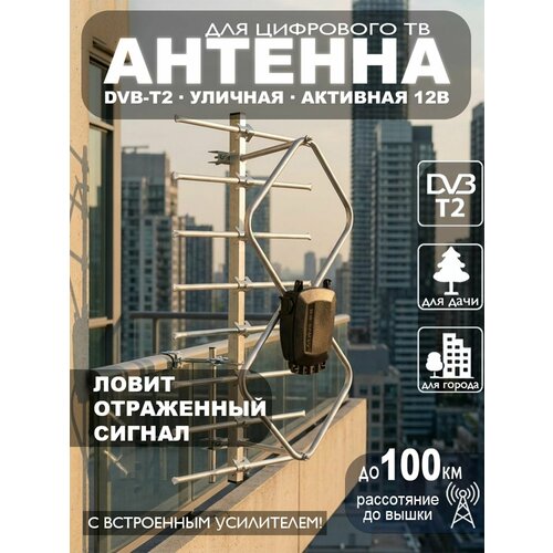 Активная антенна для телевизора уличная Мир-Антенн-Ромбик-Проф-а3 12в DVB-T2 (с усилителем)