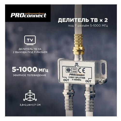 Делитель ТВ PROconnect на 2 выхода F разъём 5-1000 МГц 05-6021 100040902779