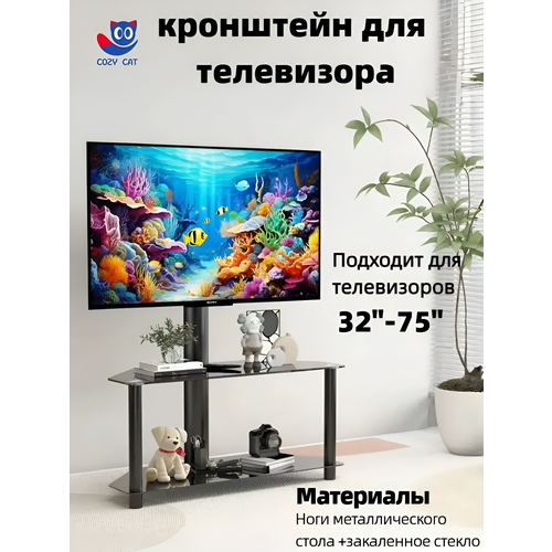 Стойка для телевизора с кронштейном 32"-75", TW1001, 2-слойное чёрный закаленного стекла