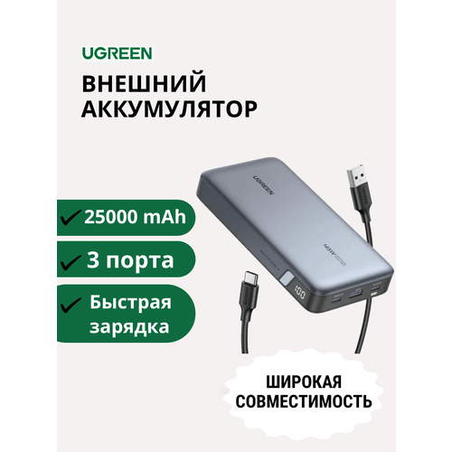 Внешний аккумулятор Ugreen PB205 25000mAh PD145W 2хType-C +1хUSB-A (90597A), тёмно-синий/ повербанк