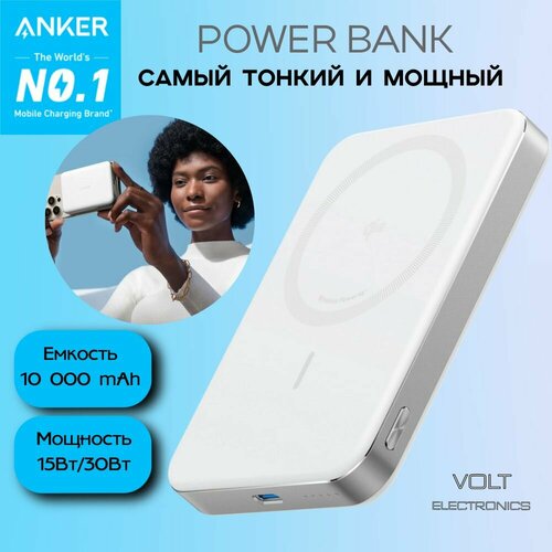 Внешний портативный аккумулятор Anker MagGo Ultra-Slim A1664, 10000 mAh, 15W/30W