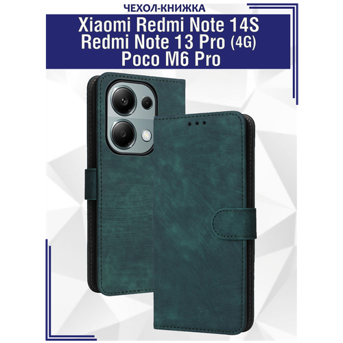 Чехол книжка для Xiaomi Redmi Note 14S/ Redmi Note 13 Pro (4G)/ Poco M6 Pro c магнитной застежкой / Редми ноут 14S, ноут 13 про c отделением под карты (зеленая)