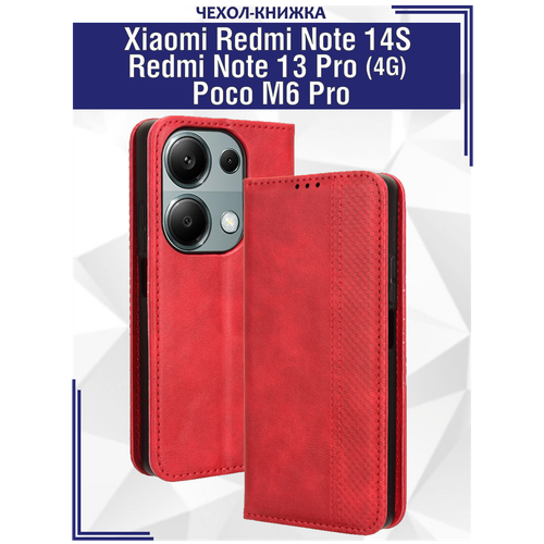 Чехол книжка для Xiaomi Redmi Note 14S/ Redmi Note 13 Pro (4G)/ Poco M6 Pro с магнитом и отделением под карты / Редми ноут 14S, ноут 13 про (красная)