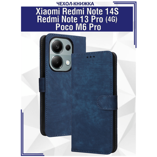Чехол книжка для Xiaomi Redmi Note 14S/ Redmi Note 13 Pro (4G)/ Poco M6 Pro c магнитной застежкой / Редми ноут 14S, ноут 13 про c отделением под карты (синяя)
