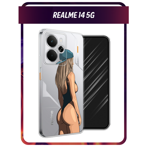 Чехол на Realme 14 5G / Реалми 14 5G с принтом Девушка в черном купальнике, прозрачный