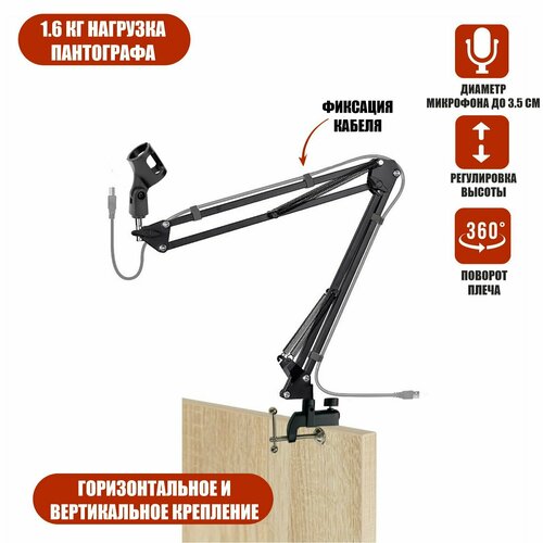 Настольная стойка пантограф ST-33 с усиленной струбциной с максимальной нагрузкой до 1.6 кг