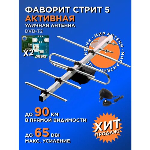Уличная антенна для цифрового ТВ ФАВОРИТ-СТРИТ-5-А3 с усилителем 9001 и 12В блоком питания!