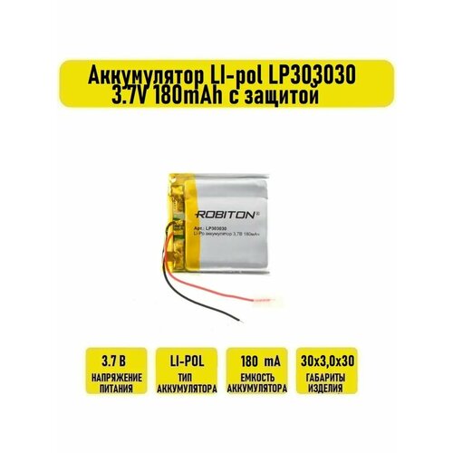Аккумулятор LI-pol LP303030 3.7V 180mAh с защитой