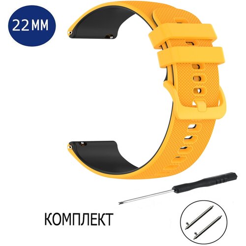 Ремешок силиконовый для смарт-часов 22мм Amazfit (Pace, Statos, GTR), Garmin (Vivoactive 4), Honor GS PRO Watch Magic желтый; черный