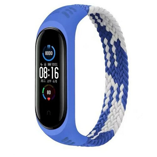 Ремешок матерчатый плетеный для фитнес-браслета Xiaomi Mi Band 3/ Mi Band 4 / Mi Band 5 / Mi Band 6 / Mi Band 7, бело-синий