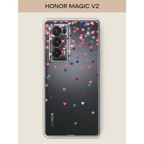 Чехол на Honor Magic V2 / Хонор Меджик V2 с принтом Посыпка сердечки, прозрачный