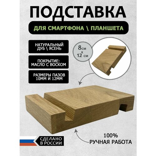 деревоПодставка для телефона из дерева дуба - это удобный, экологичный и стильный аксессуар, который поможет сохранить ваш телефон в безопасности и добавит элегантности вашему рабочему месту. Для вашего удобства подставка двусторонняя с разными размерами прорезей.