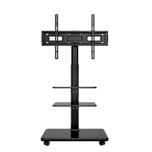 Cтойка для телевизора с кронштейном, чёрная TP-03/Поворачивается на 30°, с универсальными колесами и перегородками до 40 кг
