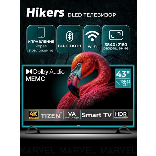 Телевизор 43" со Смарт ТВ Hikers 43HTU01 4K UHD, Smart TV, Wi Fi, Bluetooth, TIZEN OS, MEMC, Dolby Audio, HDR, DLED