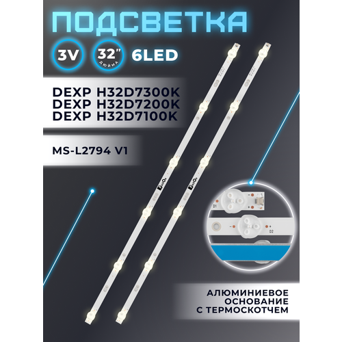 Подсветка для телевизоров DEXP H32D7200K, H32D7300K 32" 3V / 6 led / 3 pin комплект 2 шт 580mm MS-L2794 V1, HV320WHB-N56