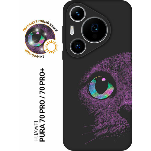 Силиконовый чехол на Huawei Pura 70 Pro / 70 Pro+ с принтом "Неоновый кот" матовый черный