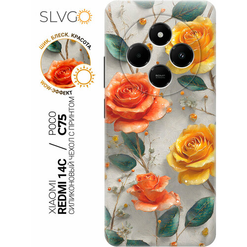 Силиконовый чехол на Xiaomi Redmi 14C / Poco C75 с принтом Пламя и солнце, trn