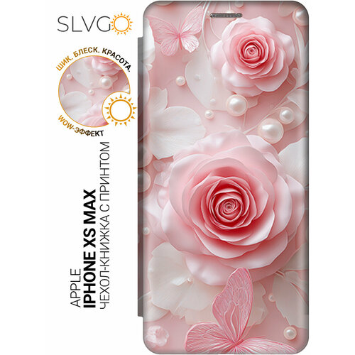 Чехол-книжка на Apple iPhone XS Max с принтом Бабочки в розовом саду, bkg