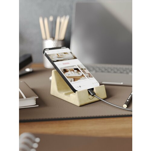Подставка для телефона Colin 10х8х6 см, настольная, держатель для смартфона и планшета, бетон, кремовый глянцевый