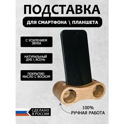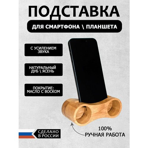 Подставка для телефона акустическая , восьмерка, 2 отверстия, с усилением звука, темный дуб