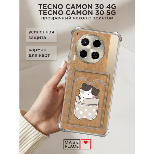 Чехол на Tecno Camon 30 4G/30 5G (Текно Камон 30 4G/30 5G) с картой и принтом Котик спит в кармане
