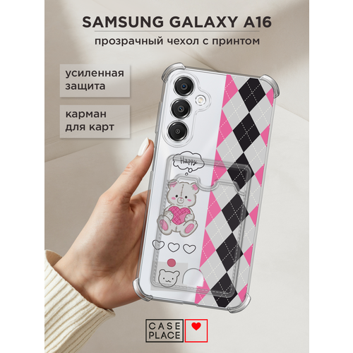 Чехол на Samsung Galaxy A16 (Самсунг Галакси А16) с картой и принтом Серый плюшевый мишка