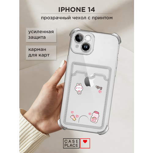 Чехол на Apple iPhone 14 (Айфон 14) с картой и принтом Bunny bubble tea