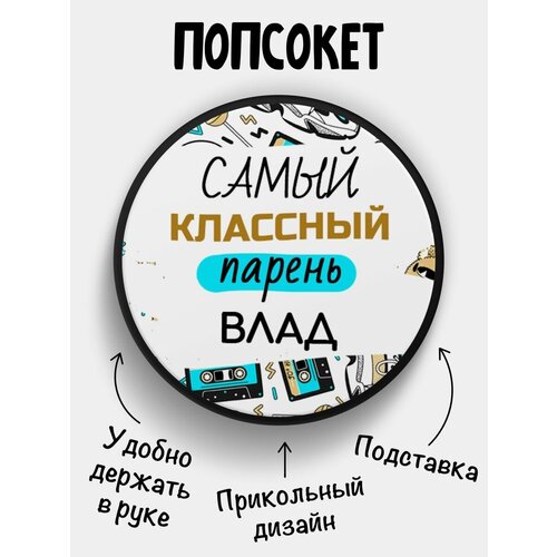 Попсокет для телефона черный цвет Самый классный парень Влад