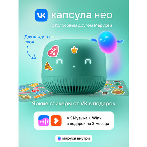 Умная колонка VK Капсула Нео с голосовым помощником Марусей, цвет Зеленый, 3 месяца подписки VK + Wink в подарок