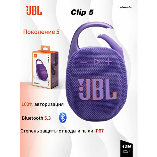 Колонка беспроводная JBL CLIP 5 Purple, Акустические системы JBL, динамики для удобств