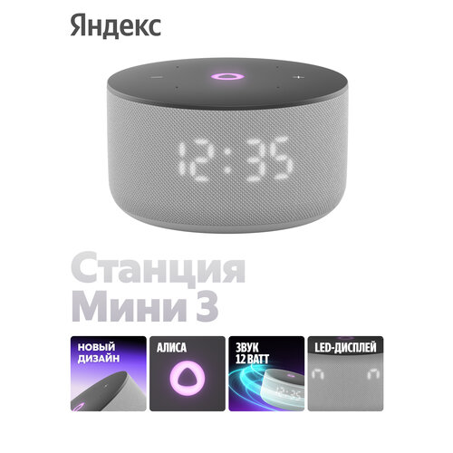 Умная колонка Яндекс Станция Мини 3 с Алисой на YaGPT, серый, 12 Вт