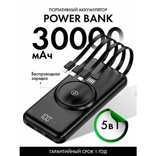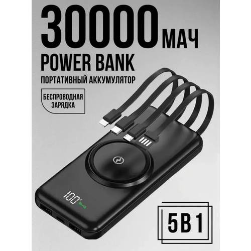 Повербанк с беспроводной зарядкой на 30000mAh и 4-мя встроенными кабелями