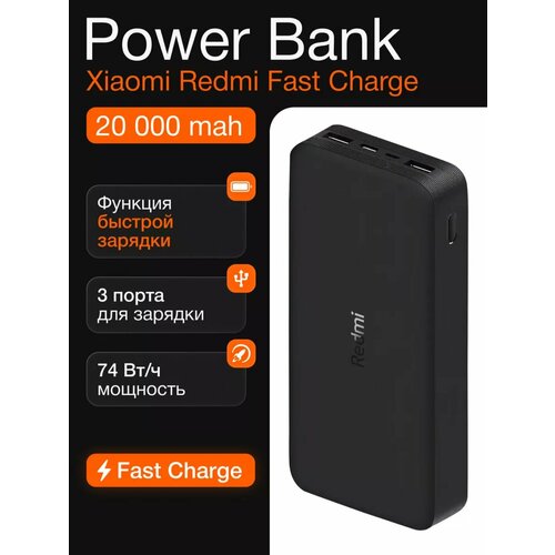 Внешний аккумулятор Повербанк 20000mAh 18W Redmi Fast Charge, бастря зардяка Черный
