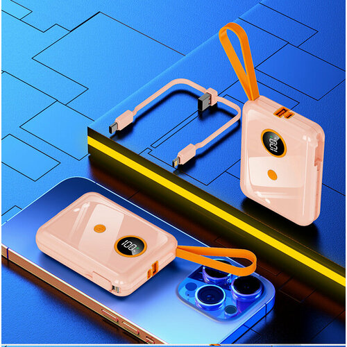 Повербанк mini с цветным дисплеем, внешний аккумулятор для телефона, 10000 мА·ч, розовый