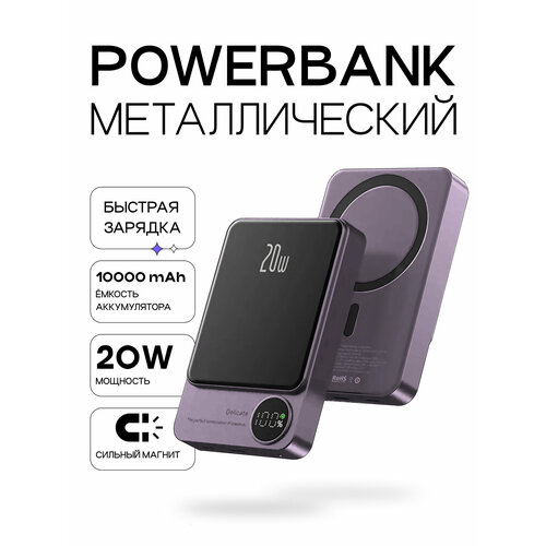 Магнитный повербанк 10000 мАч MagSafe (20 Ватт) / Magnet Wireless Q9, Сиреневый