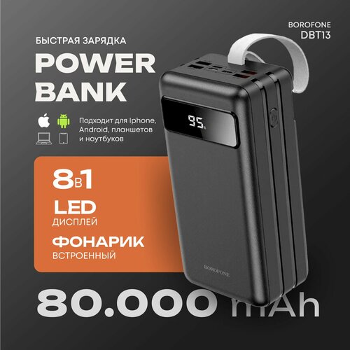 Повербанк 80000 mah с быстрой зарядкой и фонариком Borofone DBT13 22.5W ( PD 20W + QC 3.0)