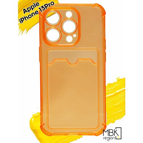 Чехол для карты на Apple iPhone 13 Pro / чехол на айфон 13 про с усиленными углами прозрачный оранжевый