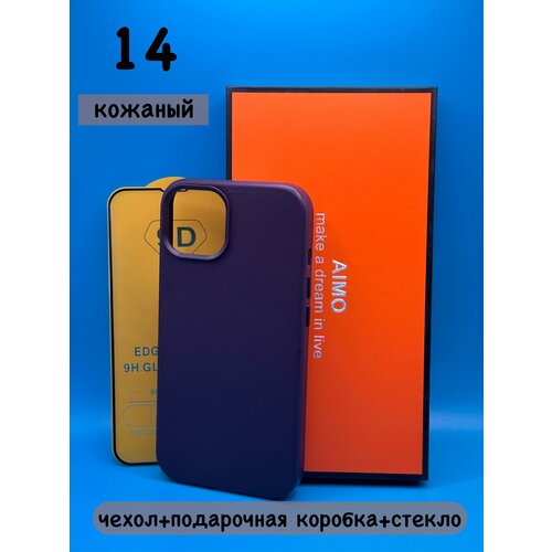 Комплект для iPhone 14 : кожаный чехол с MagSafe и анимацией + защитное стекло 9D (полная защита)