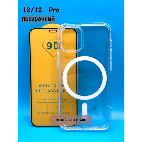 Комплект для iPhone 12/12 Pro : прозрачный чехол с MagSafe и анимацией + стекло 9D (полная защита)