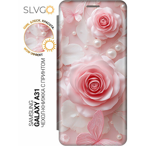 Чехол-книжка на Samsung Galaxy A31 с принтом Бабочки в розовом саду, bkg