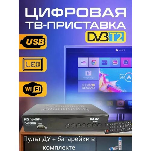 Приставка для ТВ на 20 каналов, DVB-T2 YASIN цифровая приставка 1080P, чёрная