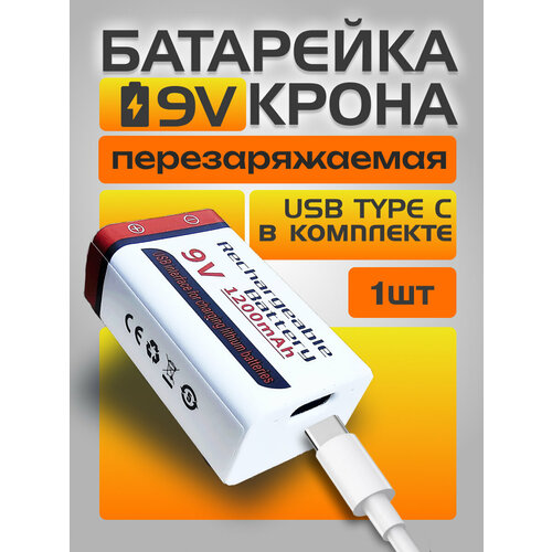 Батарейка перезаряжаемая крона 9V (Li-ion) Type-C (1 шт) + кабель