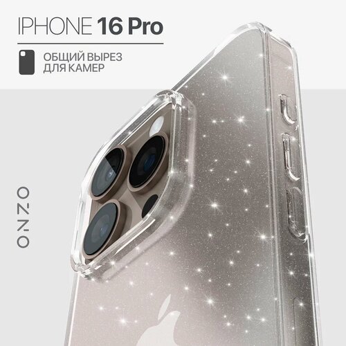 Блестящий чехол на iPhone 16 Pro / Айфон 16 Про бампер тонкий, прозрачный