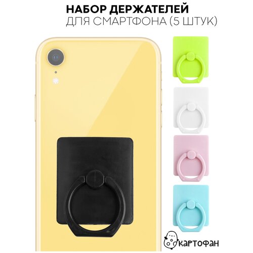 Пластиковый держатель для пальцев на телефон (попсокет на чехол для смартфона) набор 4 шт, бренд картофан, разноцветные