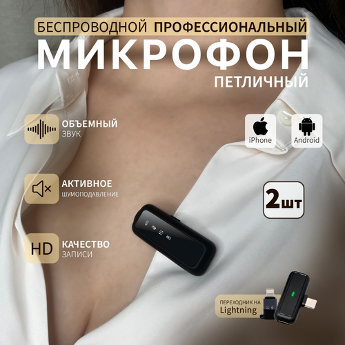 Петличный микрофон беспроводной, для iPhone/Android, шумоподавление, 2 шт.