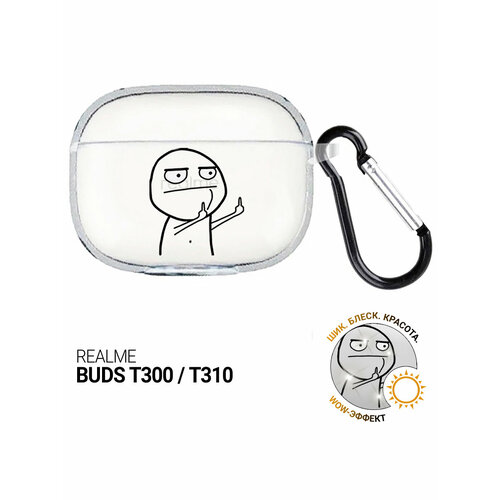 Чехол на Realme Buds T300 / T310 с принтом "Фак" прозрачный