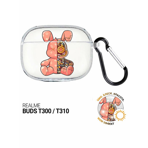 Чехол на Realme Buds T300 / T310 с принтом "Персиковый Кролик с механизмом" прозрачный