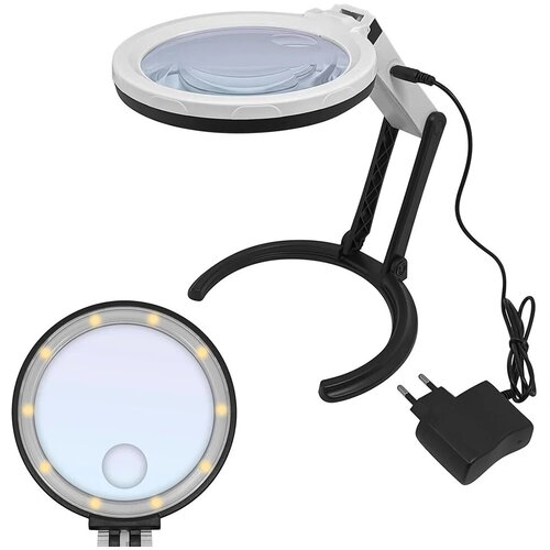Лупа настольная с подсветкой складная для чтения и рукоделия (10 LED) 2.5x/8x-90мм (mg3b-1b)